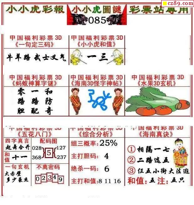 小小虎彩报2026085期3d图谜