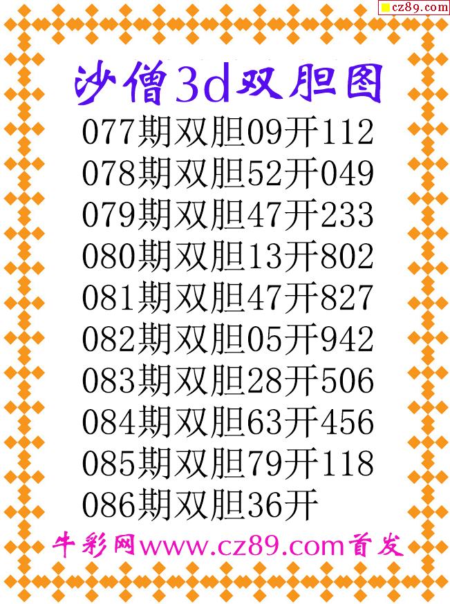 沙僧双胆26086期3d原创图谜