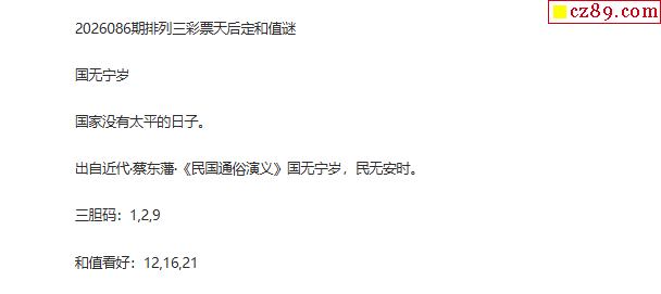 体彩P3字谜汇总2026年086期超级马克p3今...