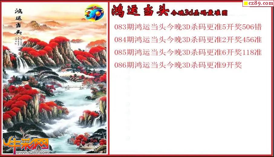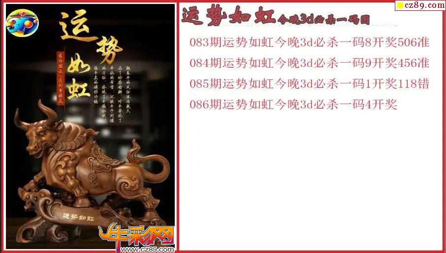 牛彩版3D预测彩报图26年086期打印版