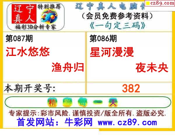 2026087期牛彩专家一句定三码彩报