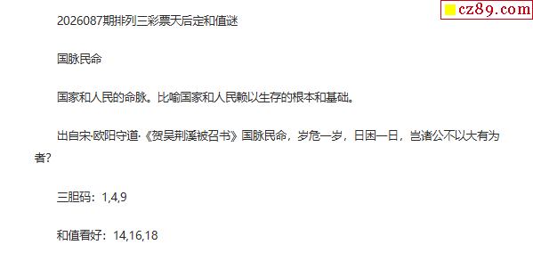 彩票天后p3定和值谜26年087期