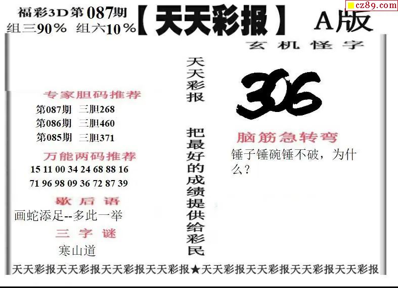 福彩3D2026087期天天彩报A版 天天彩报B版