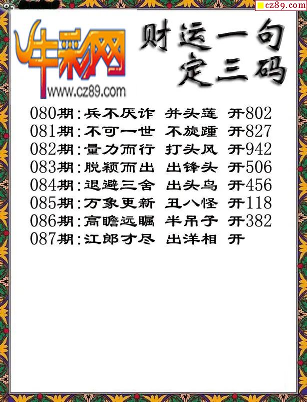牛彩版3D预测彩报图26年087期打印版