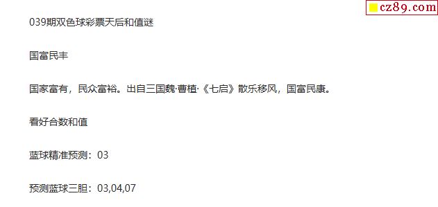 26年福彩双色球039期 彩票天后和值谜