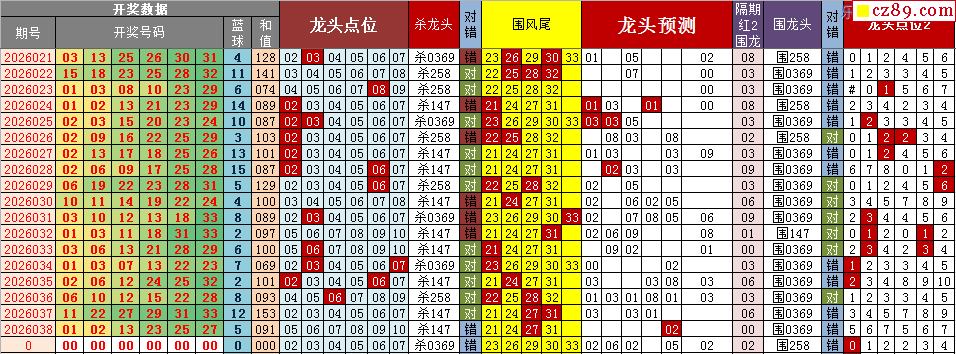 26年038期秋雨龙头凤尾走势图表