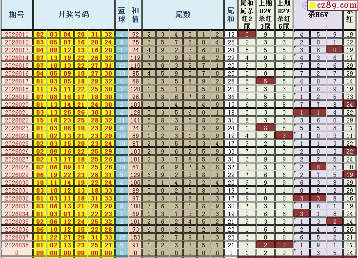 双色球2026039期阳光杀蓝汇总图表