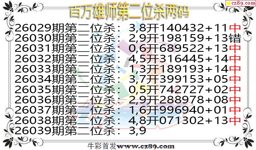 七星彩2026039期百万雄师第二位杀两码图谜 10中9