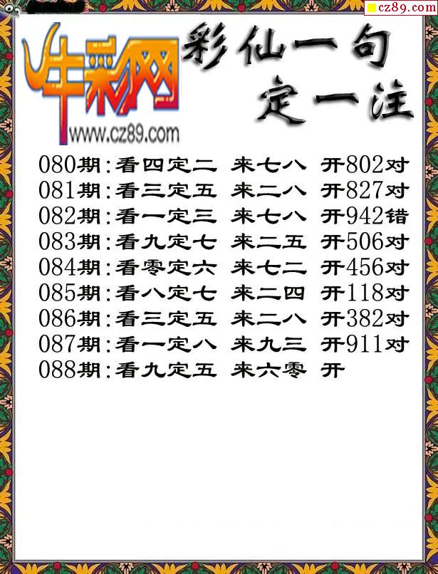牛彩版3D字谜彩报图26年088期打印版