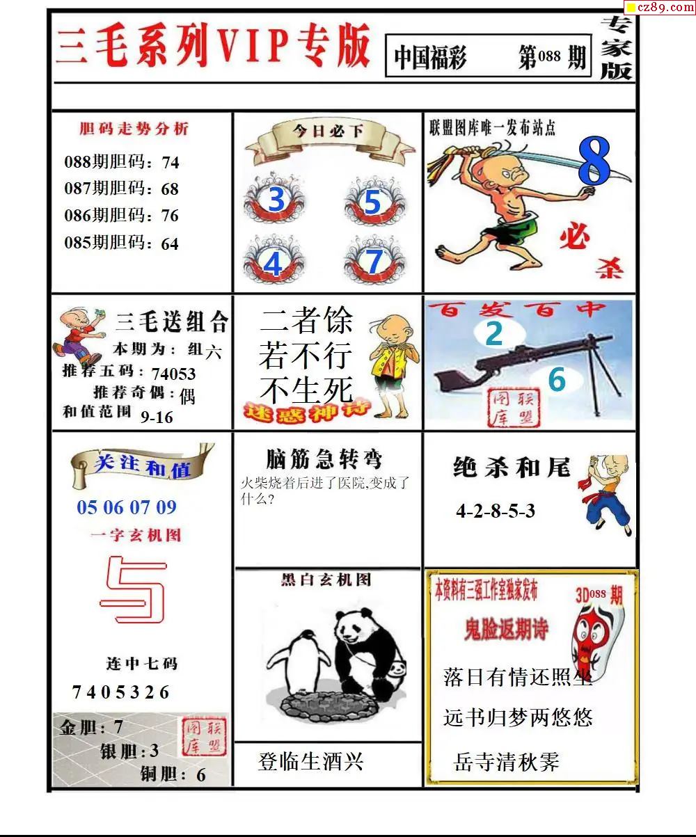 福彩3D2026088期 万家图谜三国胆拖杀图