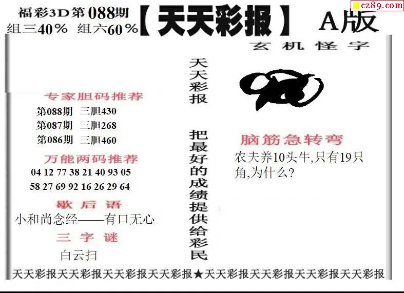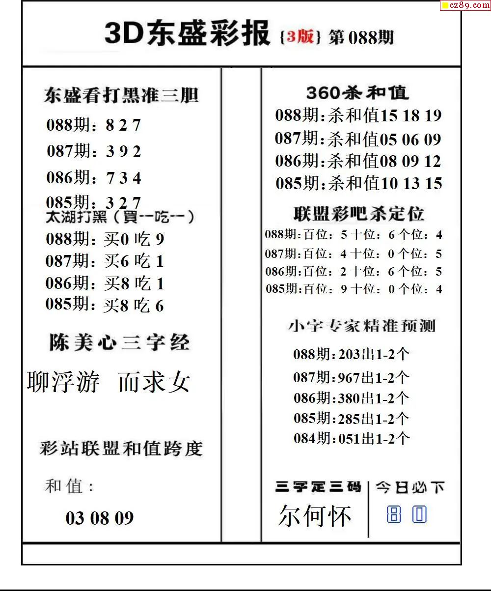 福彩3D2026088期 祁连牧哥百财纳福胆码图谜推荐