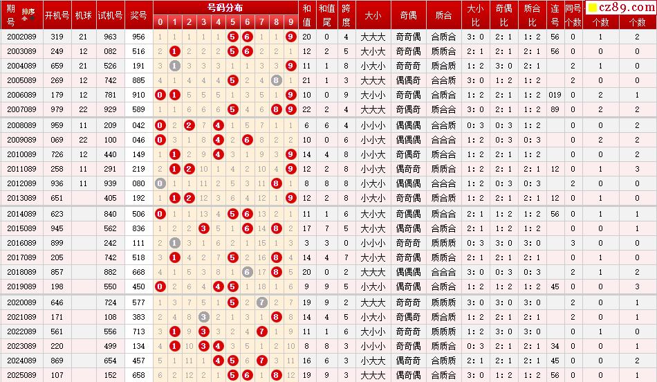 089期福彩3D历史上的开奖号码