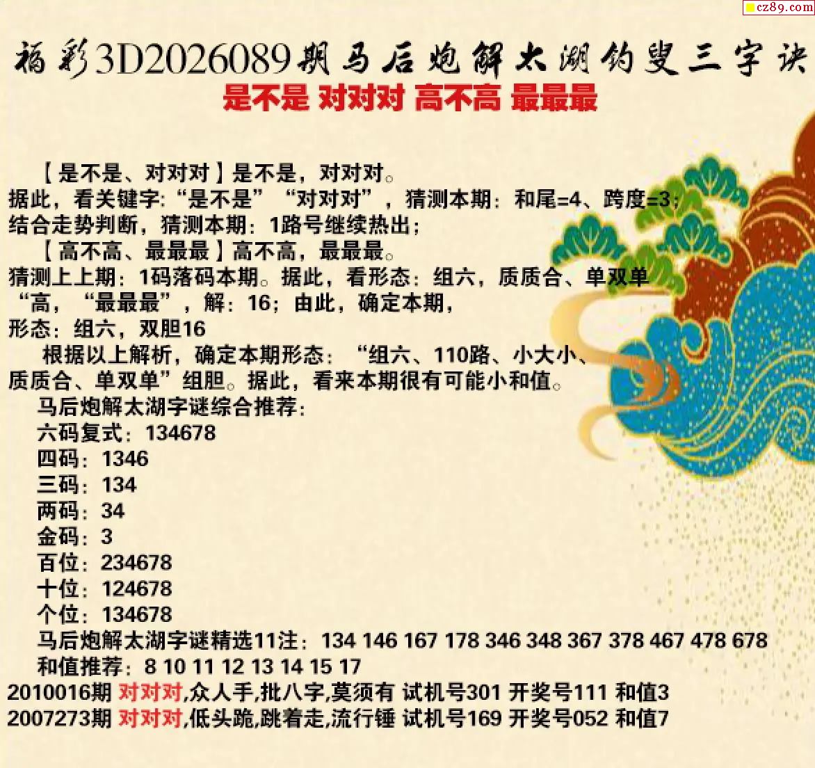 26年089期牛彩版解太湖钓叟三字诀今日汇总