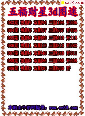 2026089期3d图谜汇总(五)