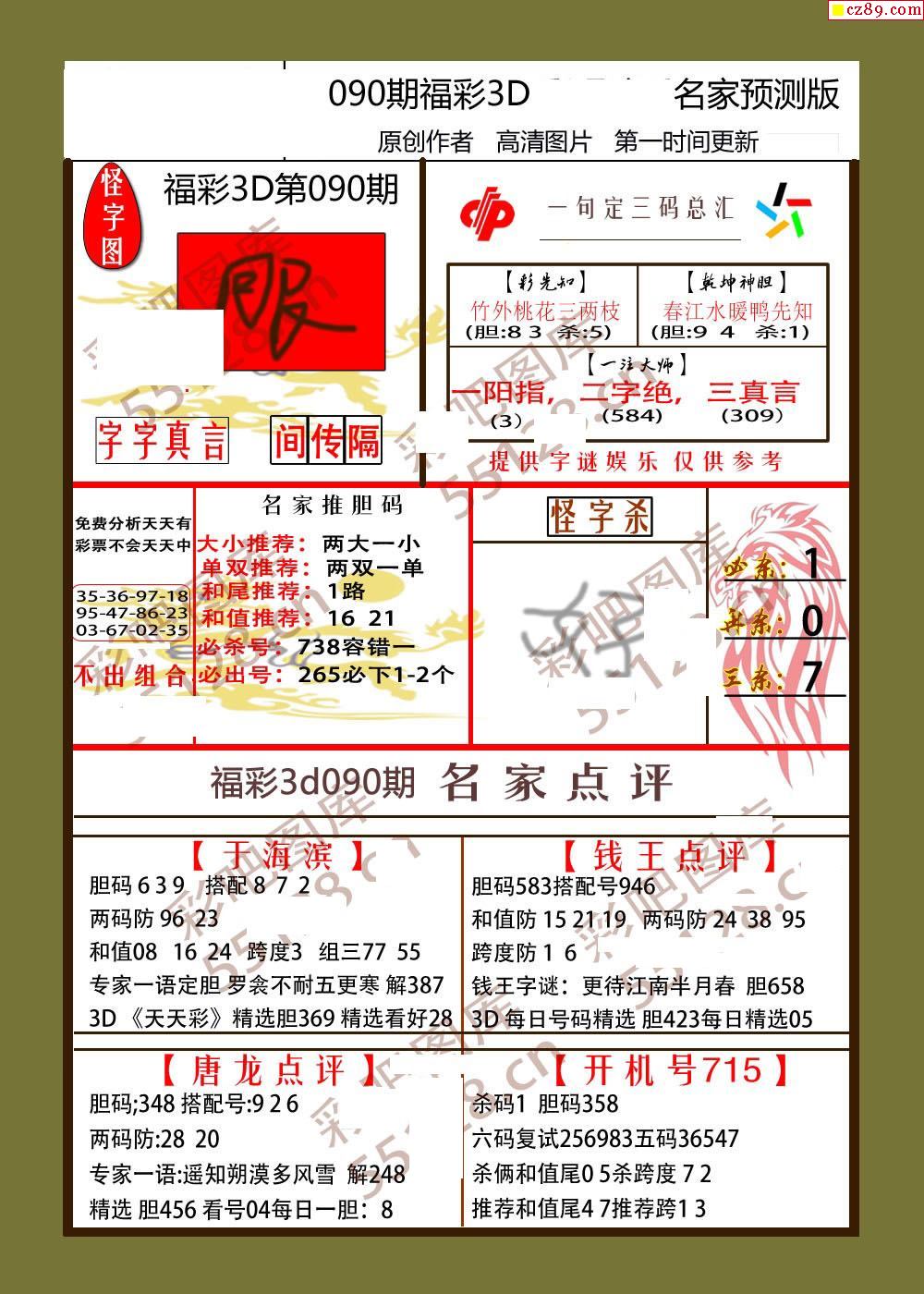 26年090期福彩3d牛彩名家预测图谜