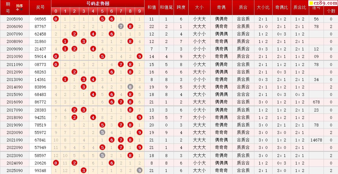 第090期体彩P5历史同期对比
