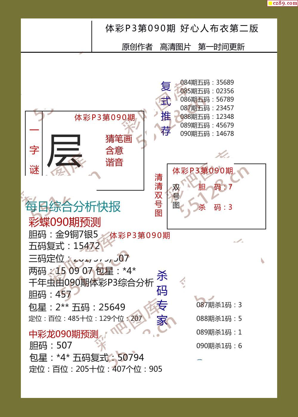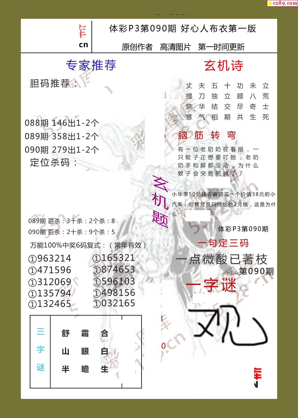 2026年090期牛彩网体彩P3画迷图谜汇总分享
