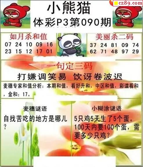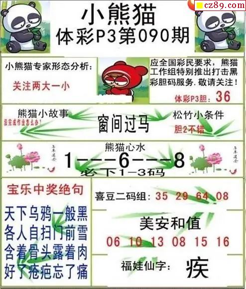 小熊猫2026090期体彩P3图谜