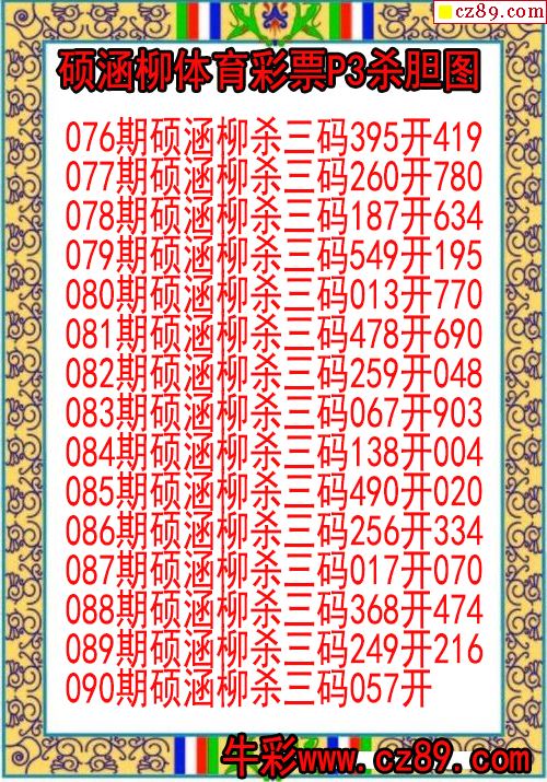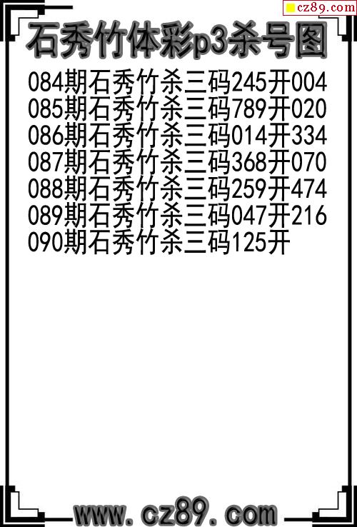 26年090期石秀竹体彩p3杀号图