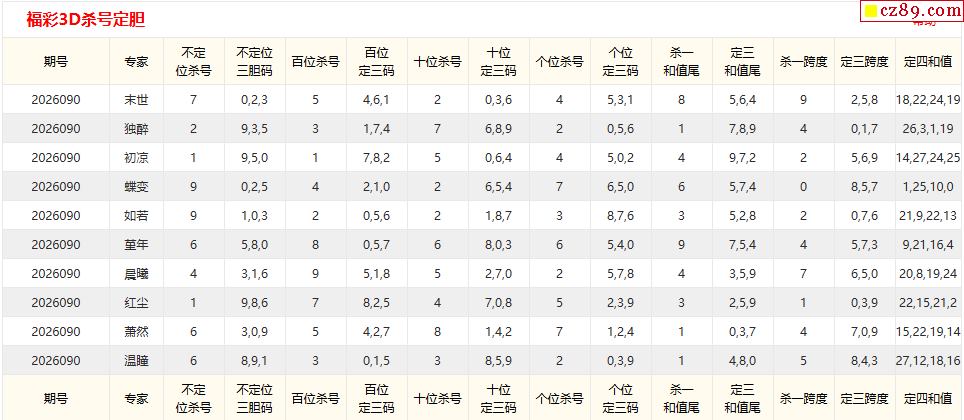 26年090期彩宝贝专家福彩3D杀号定码图表