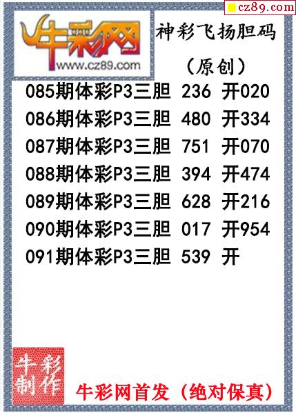 神彩飞扬三胆091期体彩P3图谜(原创)