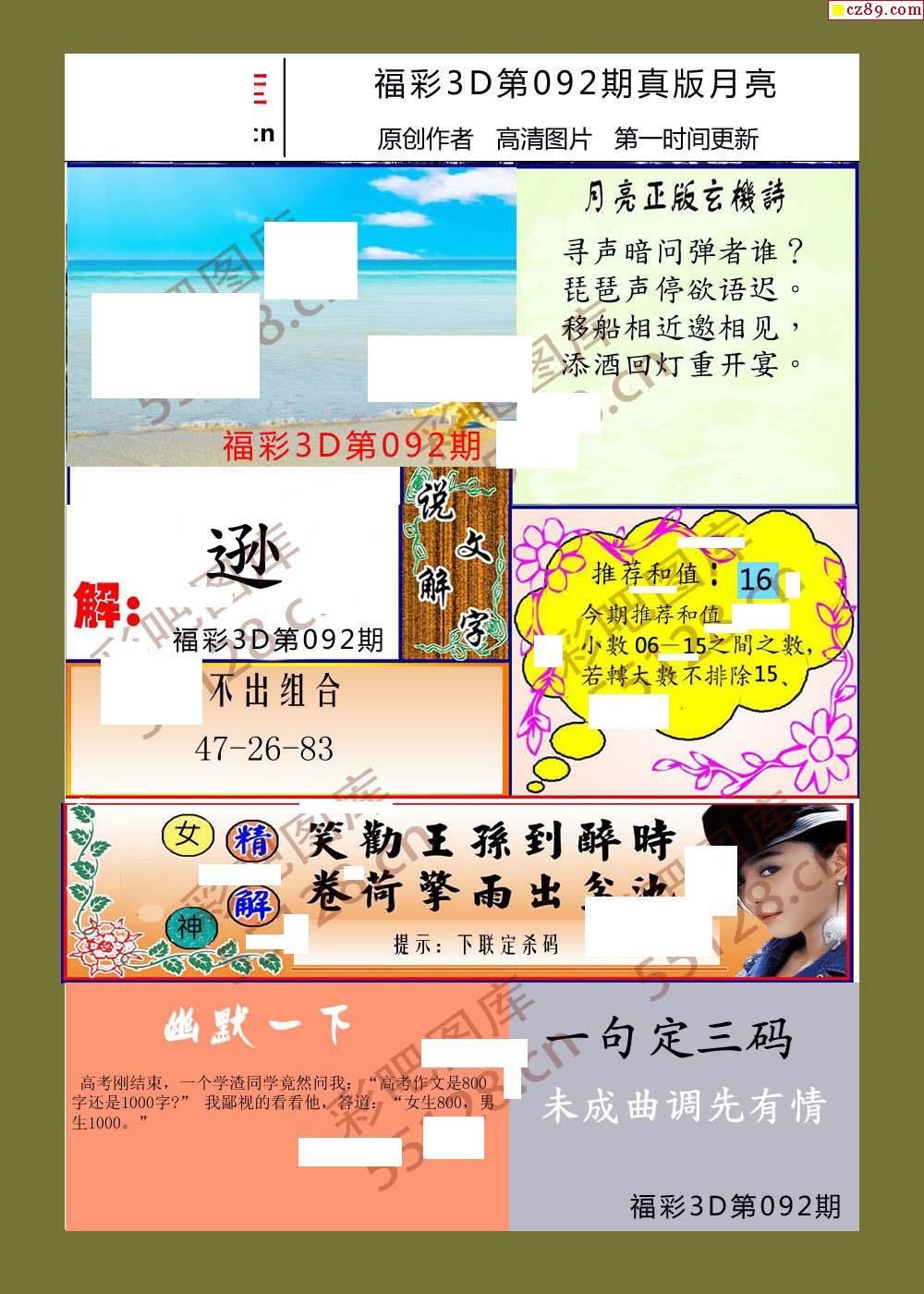 月亮26年092期福彩3d玄机图谜