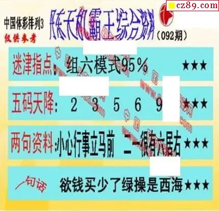 神彩飞扬三胆092期体彩P3图谜(原创)