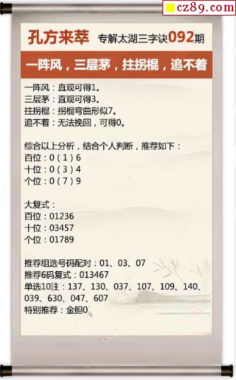 26年092期牛彩版解太湖钓叟三字诀今日汇总
