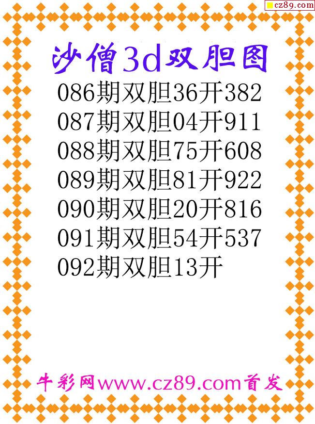 沙僧双胆26092期3d原创图谜