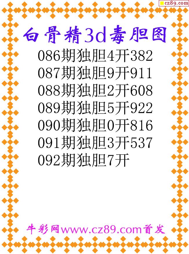 白骨精独胆26092期3d原创图谜