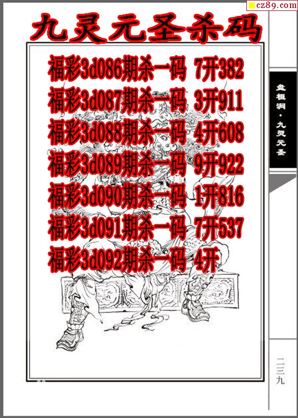 九灵元圣杀码2026092期3d图谜(原创)