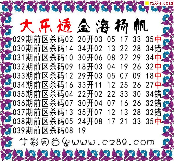 大乐透039期牛彩特邀专家前区后区杀号定胆图表
