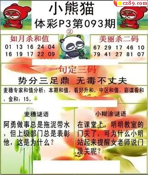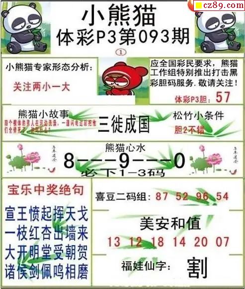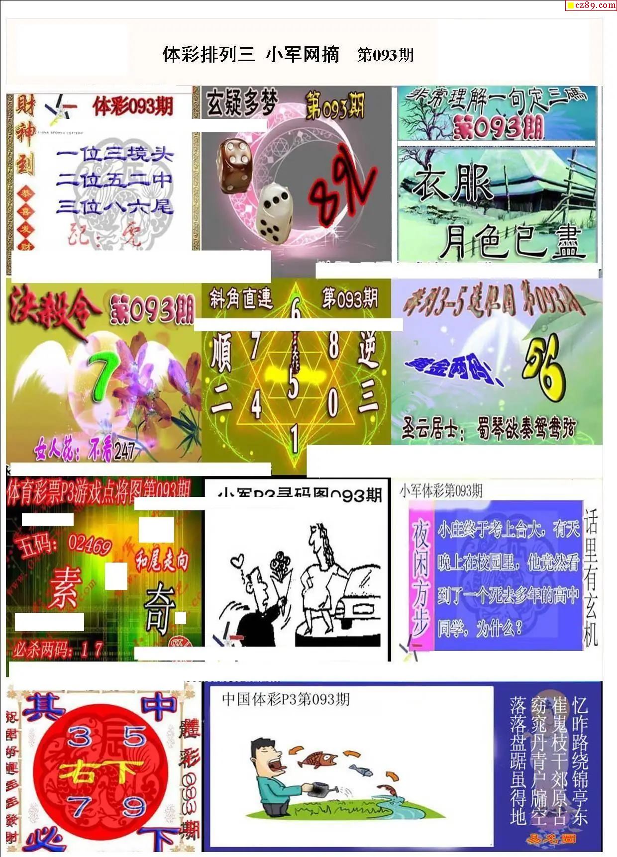 2026年093期牛彩网体彩P3画迷图谜汇总分享