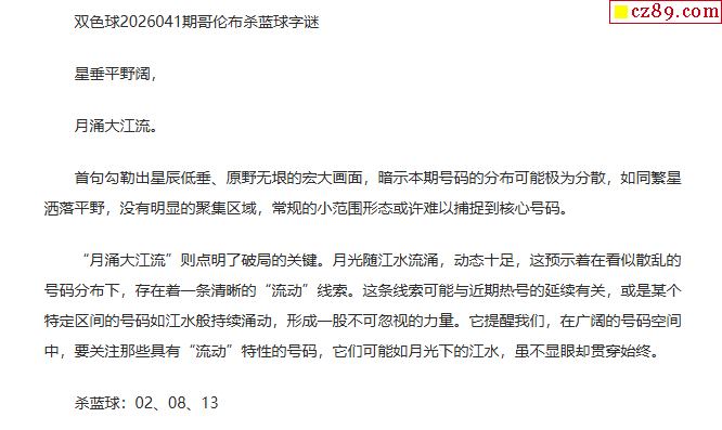 26年福彩双色球041期 哥伦布一句杀蓝球字谜