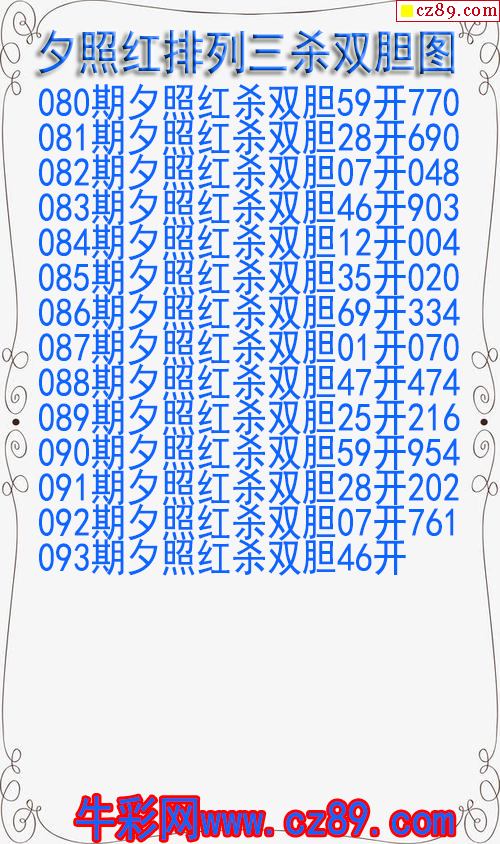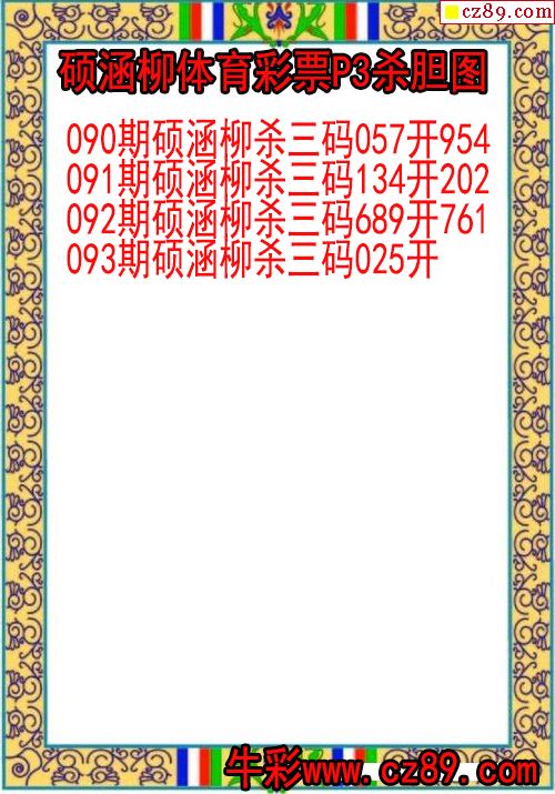 2026年093期牛彩网体彩P3画迷图谜汇总分享
