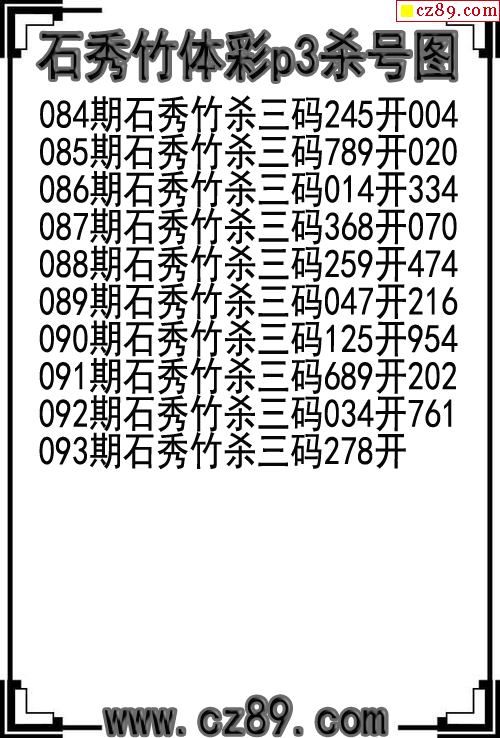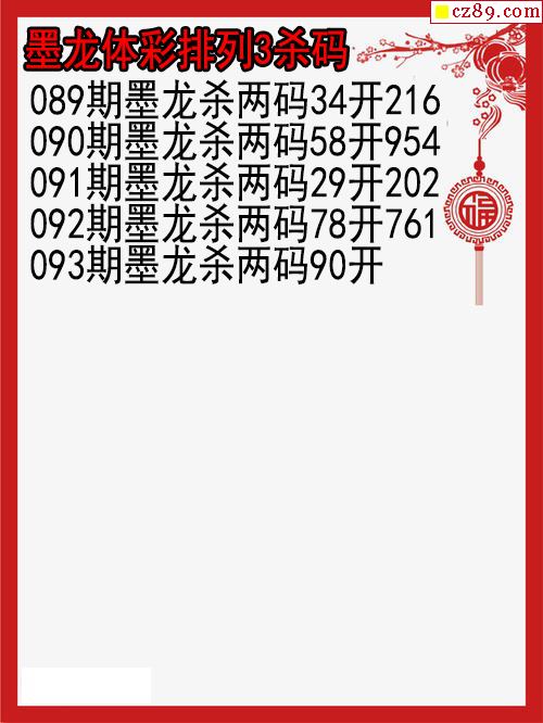 26年093期墨龙体彩排列3杀码图