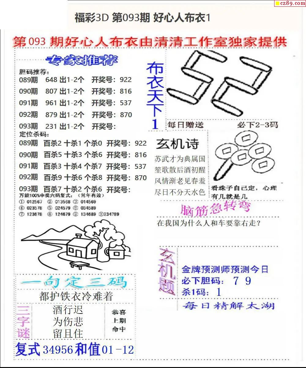 2026093期3D图谜汇总(一)