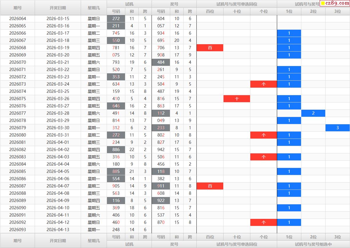 2026年福彩3D094期 百期大数据杀号定三码技巧