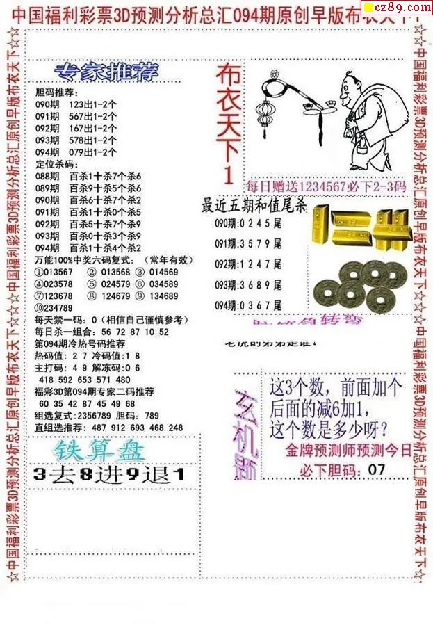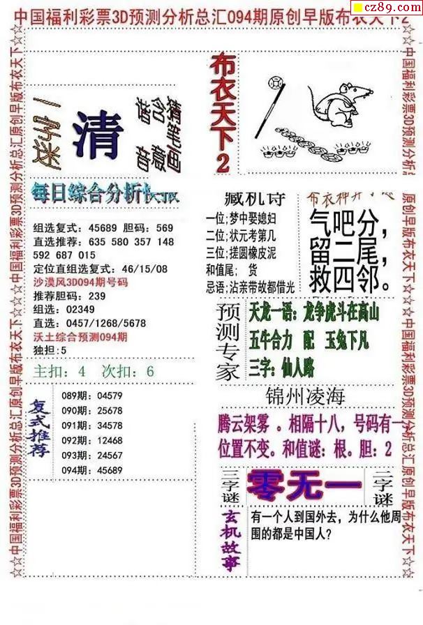早版布衣2026094期3d图谜