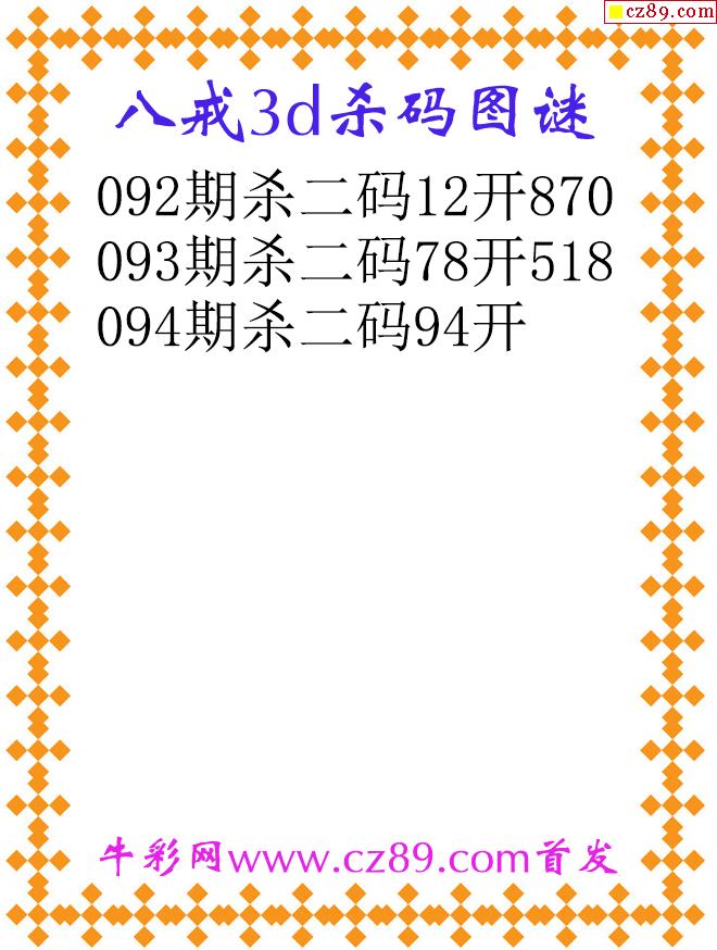 八戒杀码26094期3d原创图谜