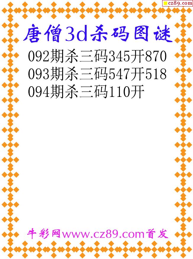 唐僧杀码26094期3d原创图谜