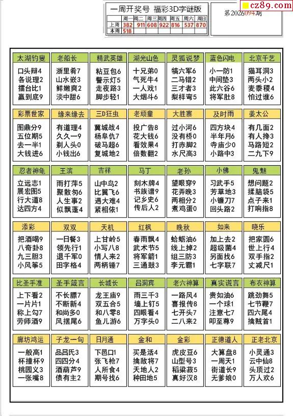 2026094期3d字谜图谜总汇
