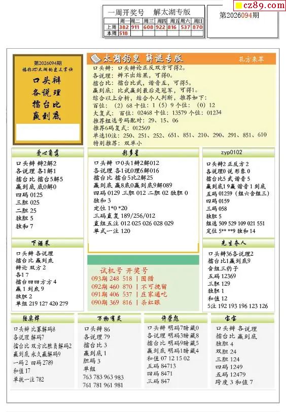 2026094期福彩3D图谜汇总
