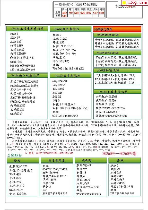 牛彩版3D预测彩报图26年094期打印版