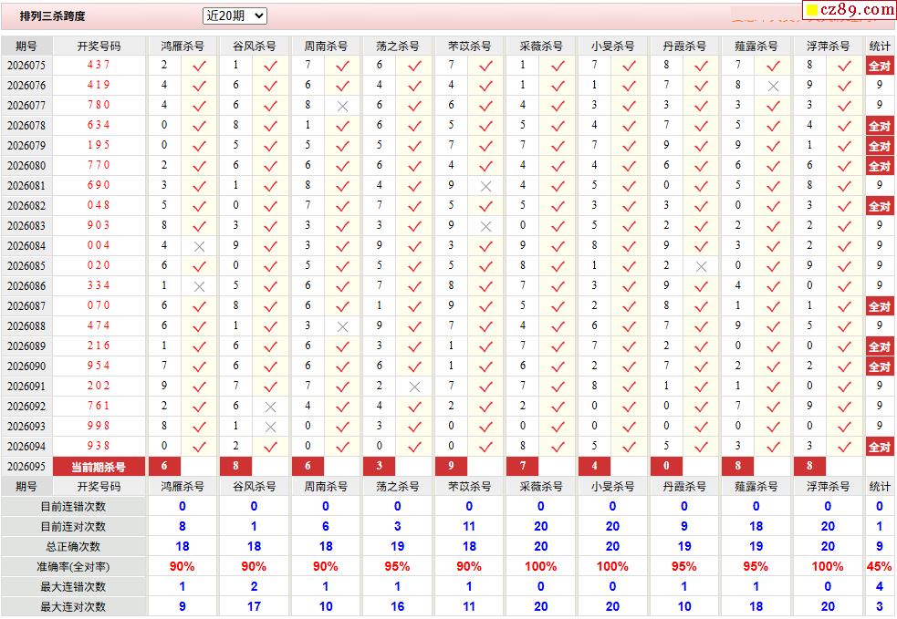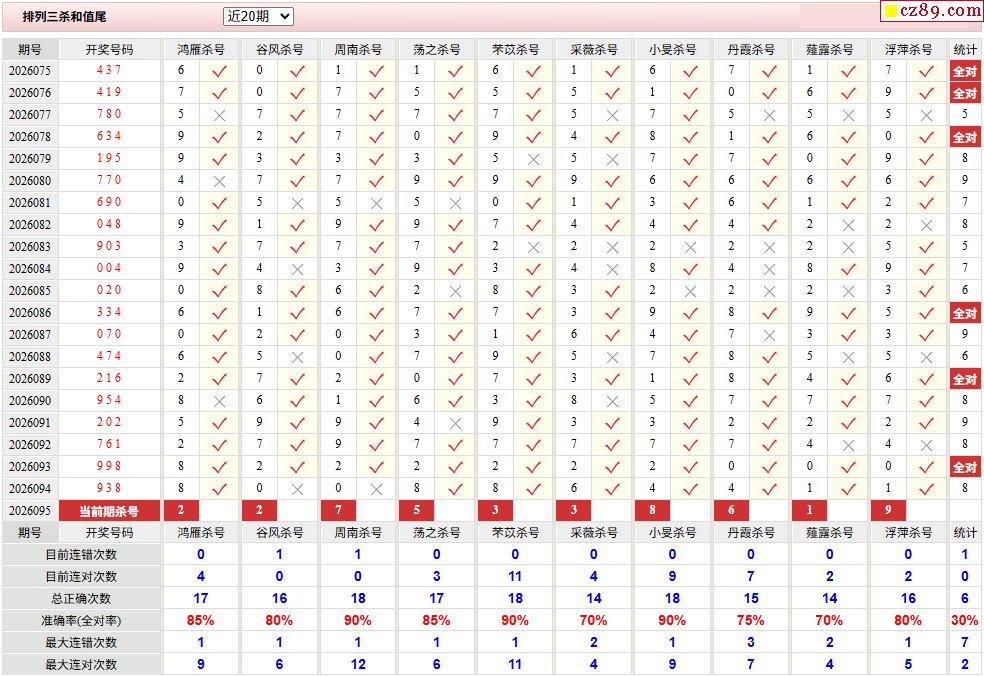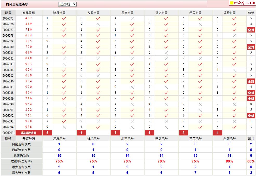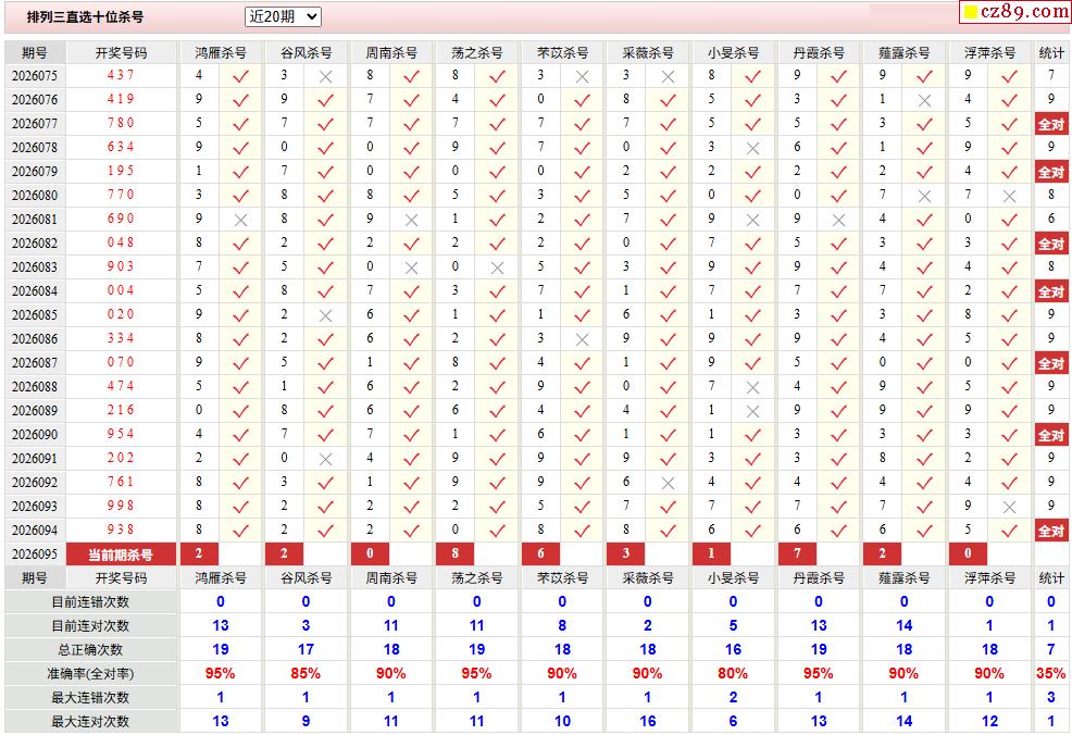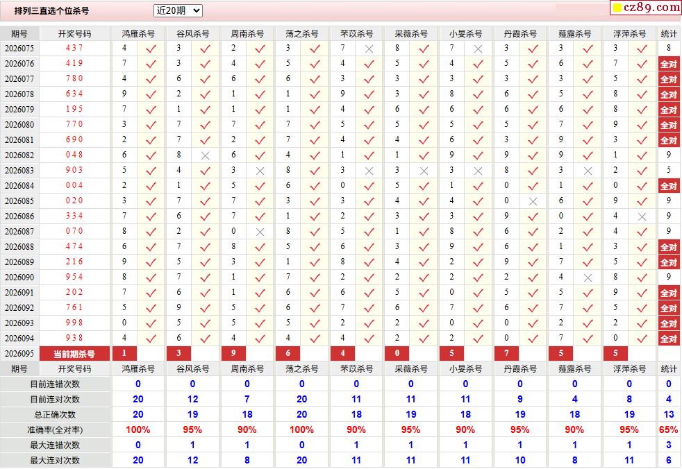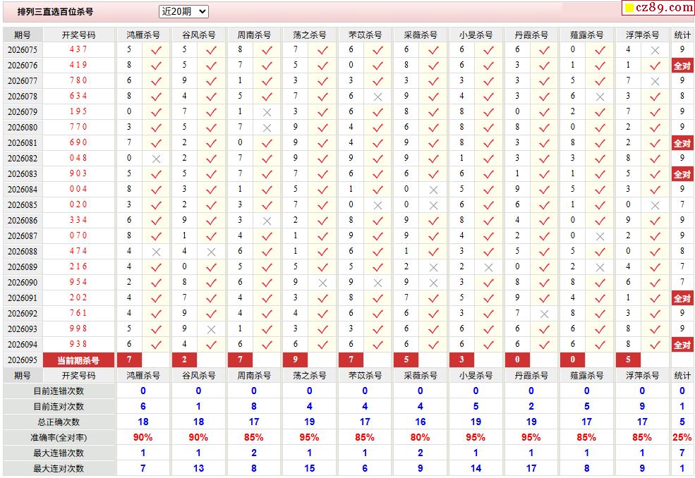 26年095期彩宝贝专家体彩P3杀号定码图表