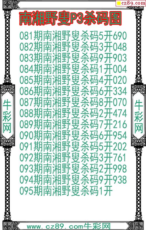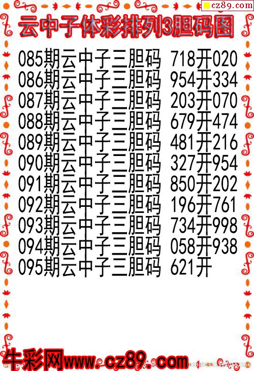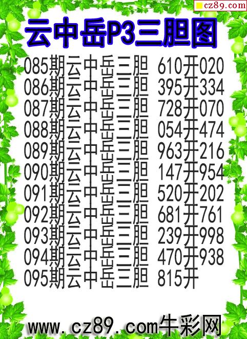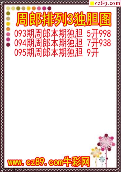 2026年095期牛彩网体彩P3画迷图谜汇总分享