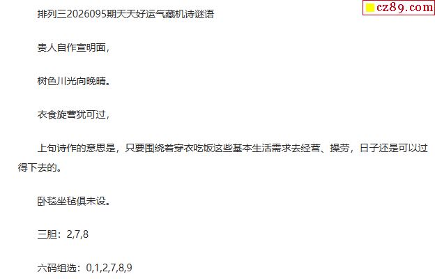 2026年藏机图095期 正版体彩P3藏机图诗汇总