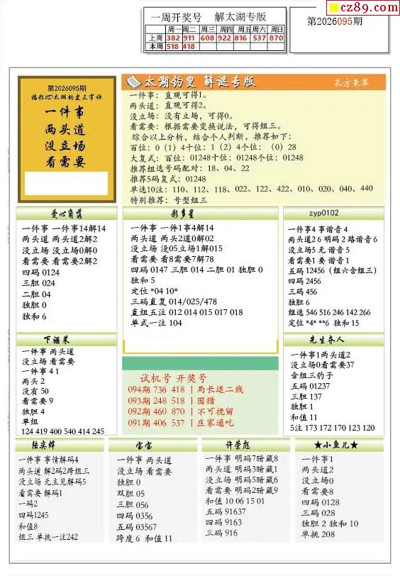 2026095期解太湖3d字图迷汇总报