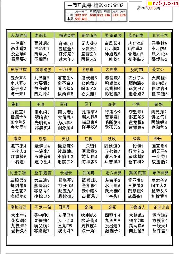 2026095期福彩3D图谜汇总