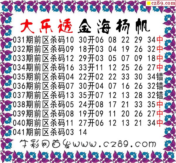 大乐透041期牛彩特邀专家前区后区杀号定胆图表
